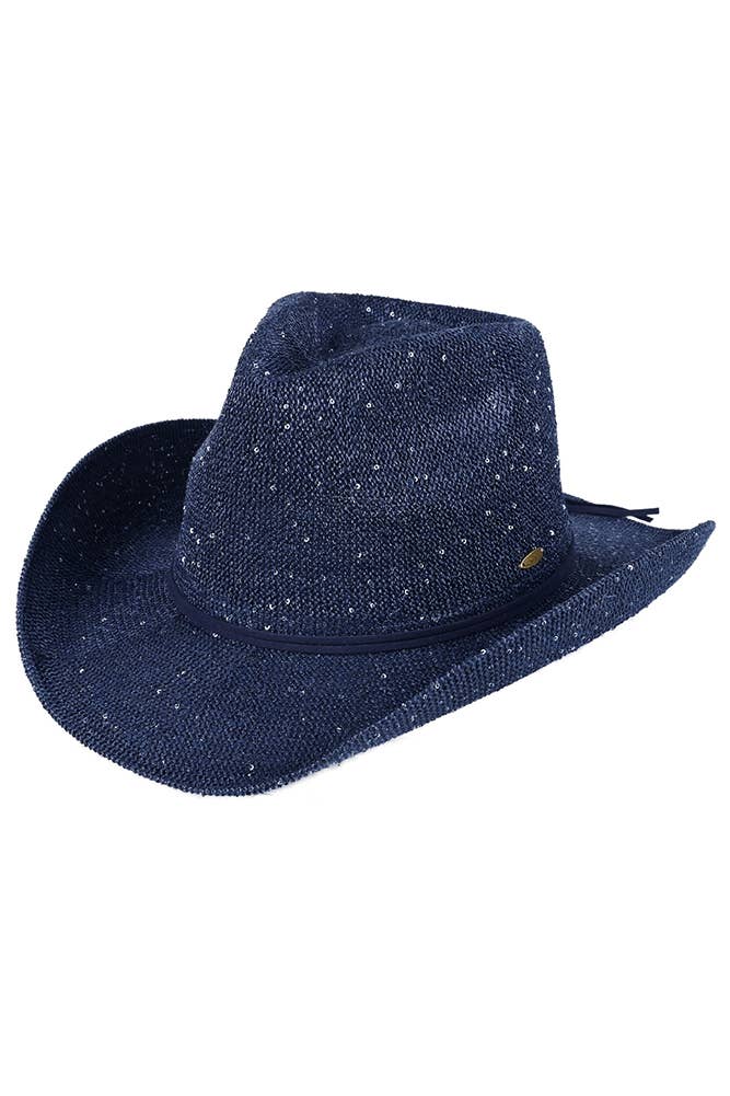 C.C Sequin Cowboy/Cowgirl Hat with Suede String Trim Band