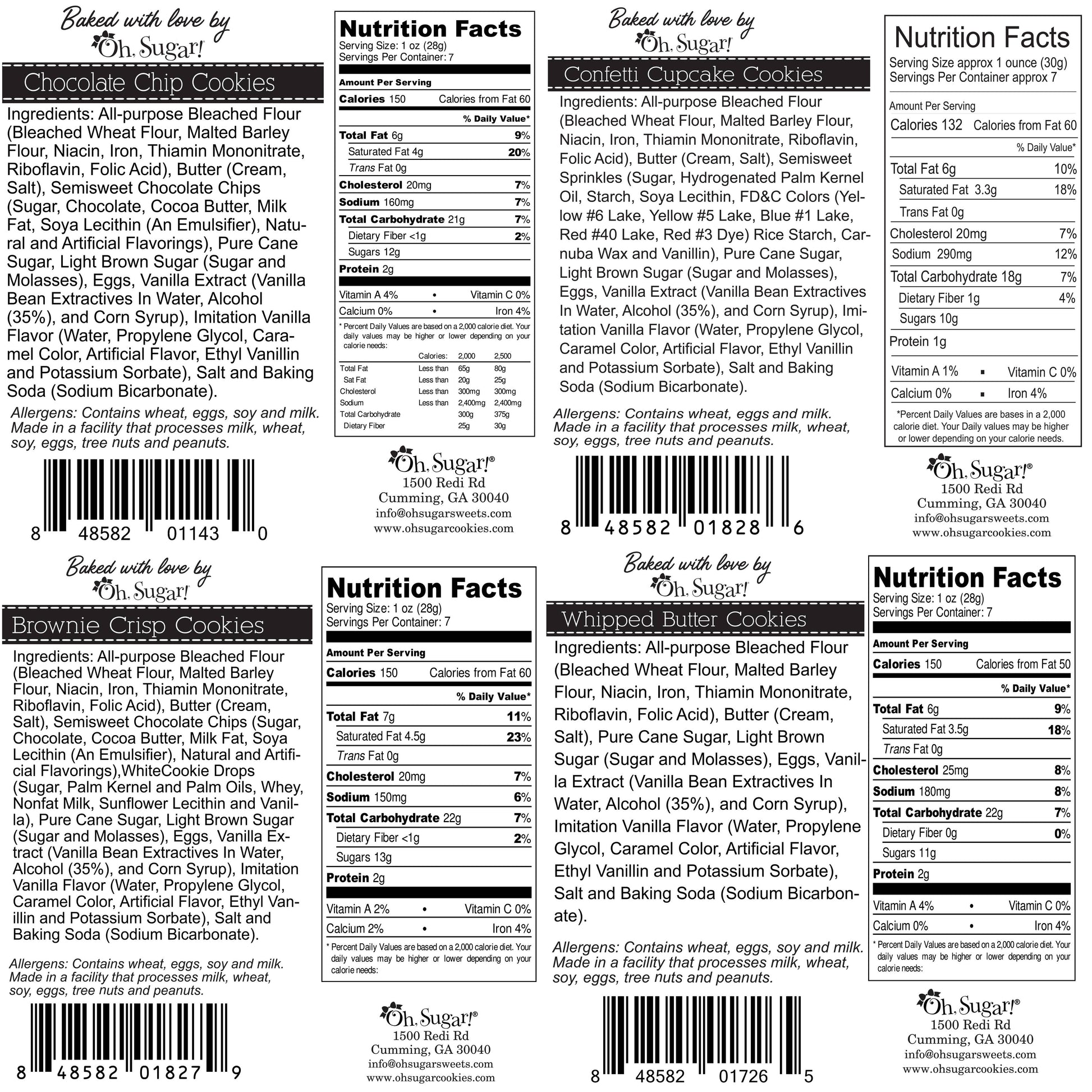 You'll receive three bags of each flavor cookie - Chocolate Chip, Confetti Cupcake, Brownie Crisps, Whipped Butter and our limited-edition Ginger Snap and Oatmeal Scotchie cookies.