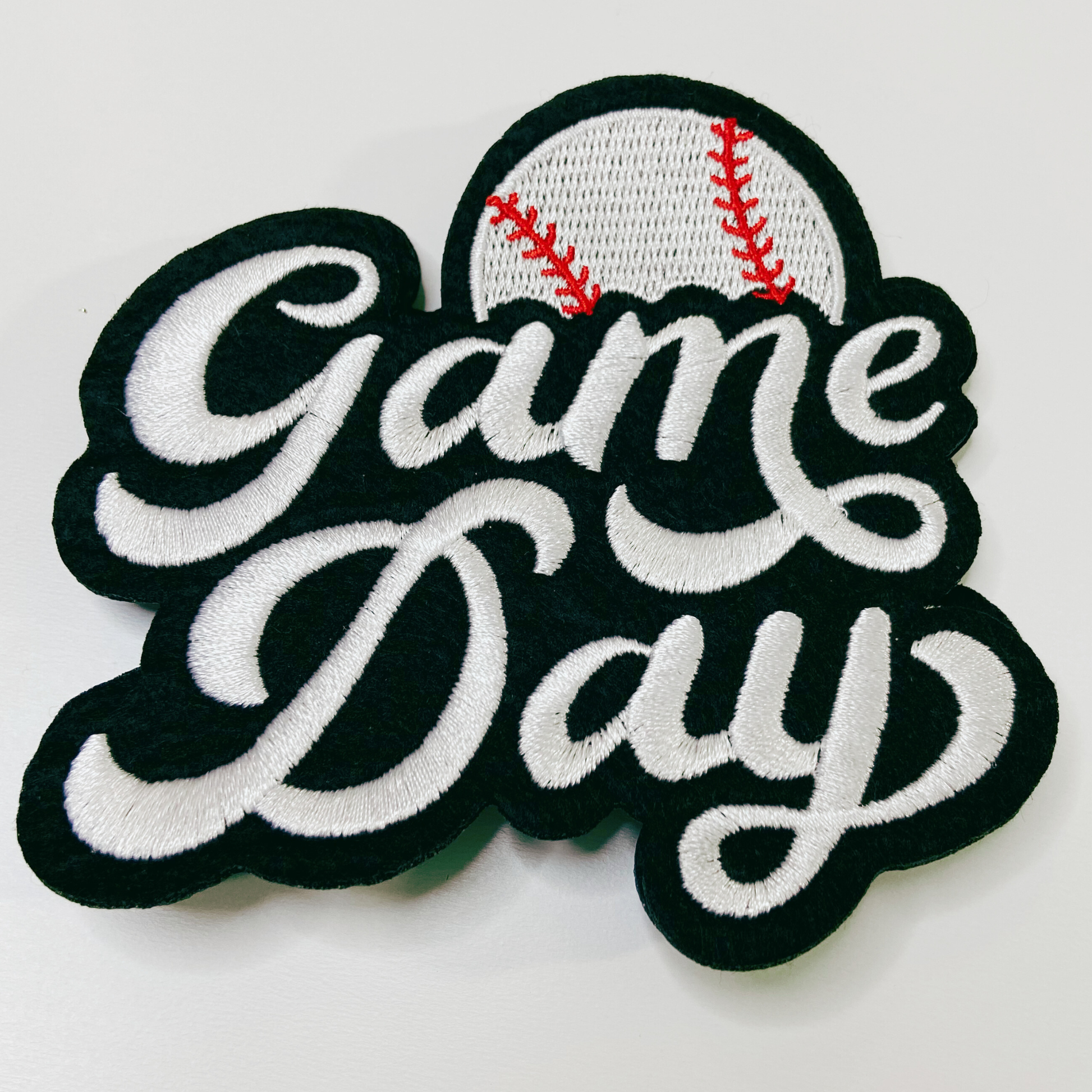 GAME DAY Baseball -4" embroidered Patch in White & Black