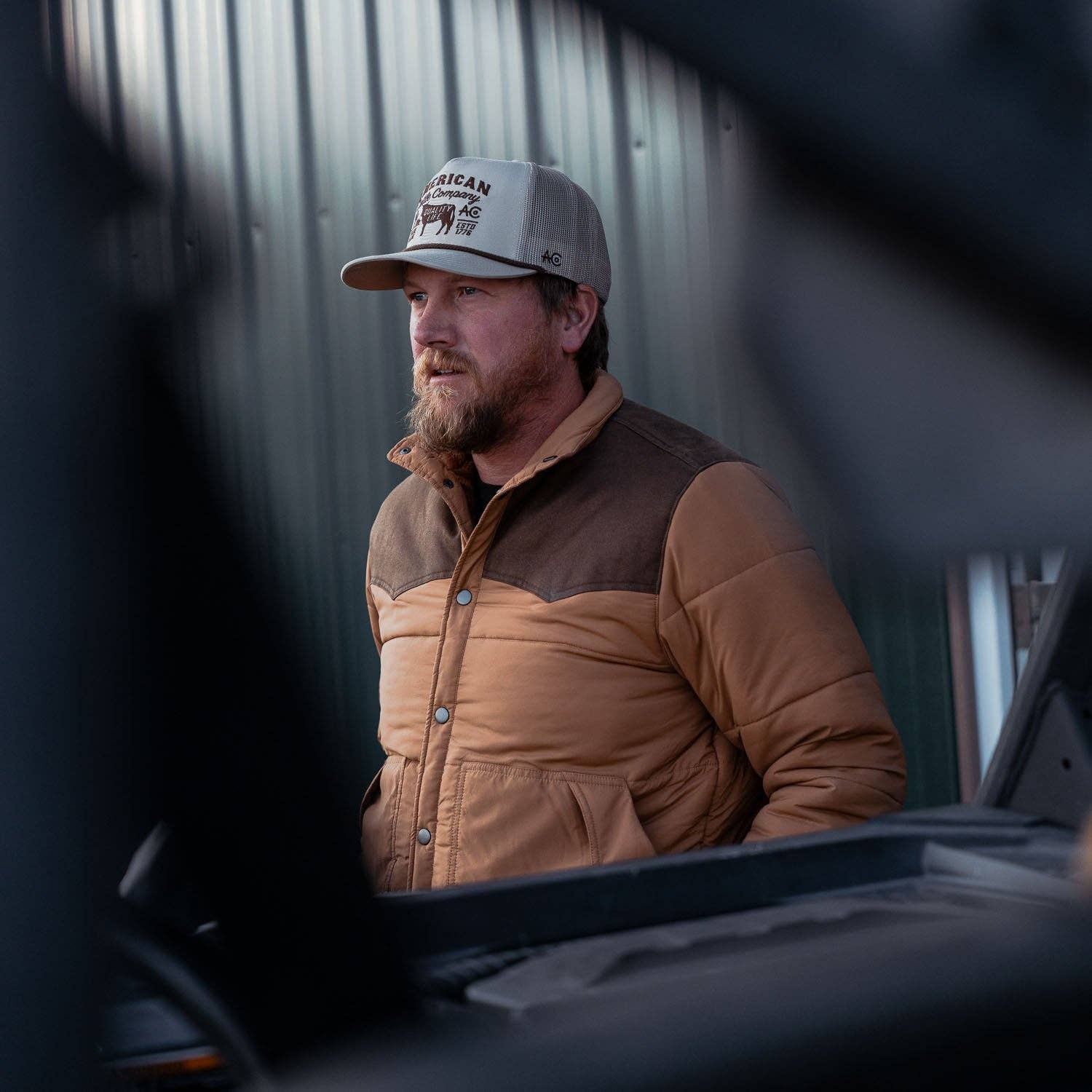 Meet the Cold Snap Puffer—a modern puffer with old-school Western grit. Built like the jackets our dads wore, but with a cleaner fit. Padded warmth you can trust, western yoke detailing across the shoulders, and a wool-blend polar fleece lining that nods to ranch roots. Whether you’re throwing hay at dawn or tailgating under stadium lights, this jacket’s made to handle the cold without looking like you’re headed to Everest.